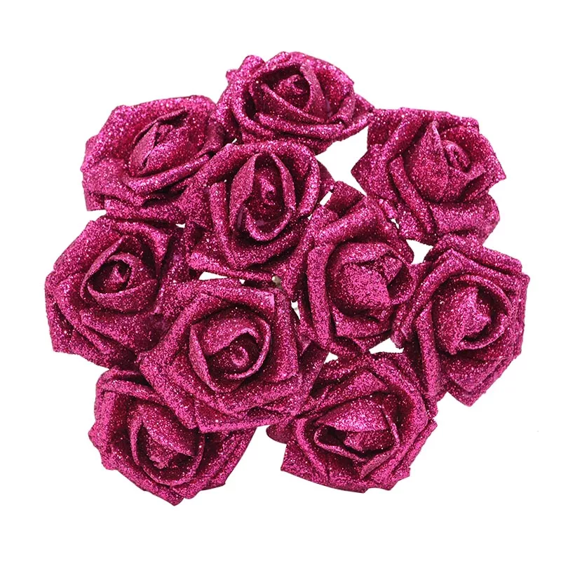 10 Pcs Glitter Foam Rose Artificial Flowers for Home & Wedding Decor