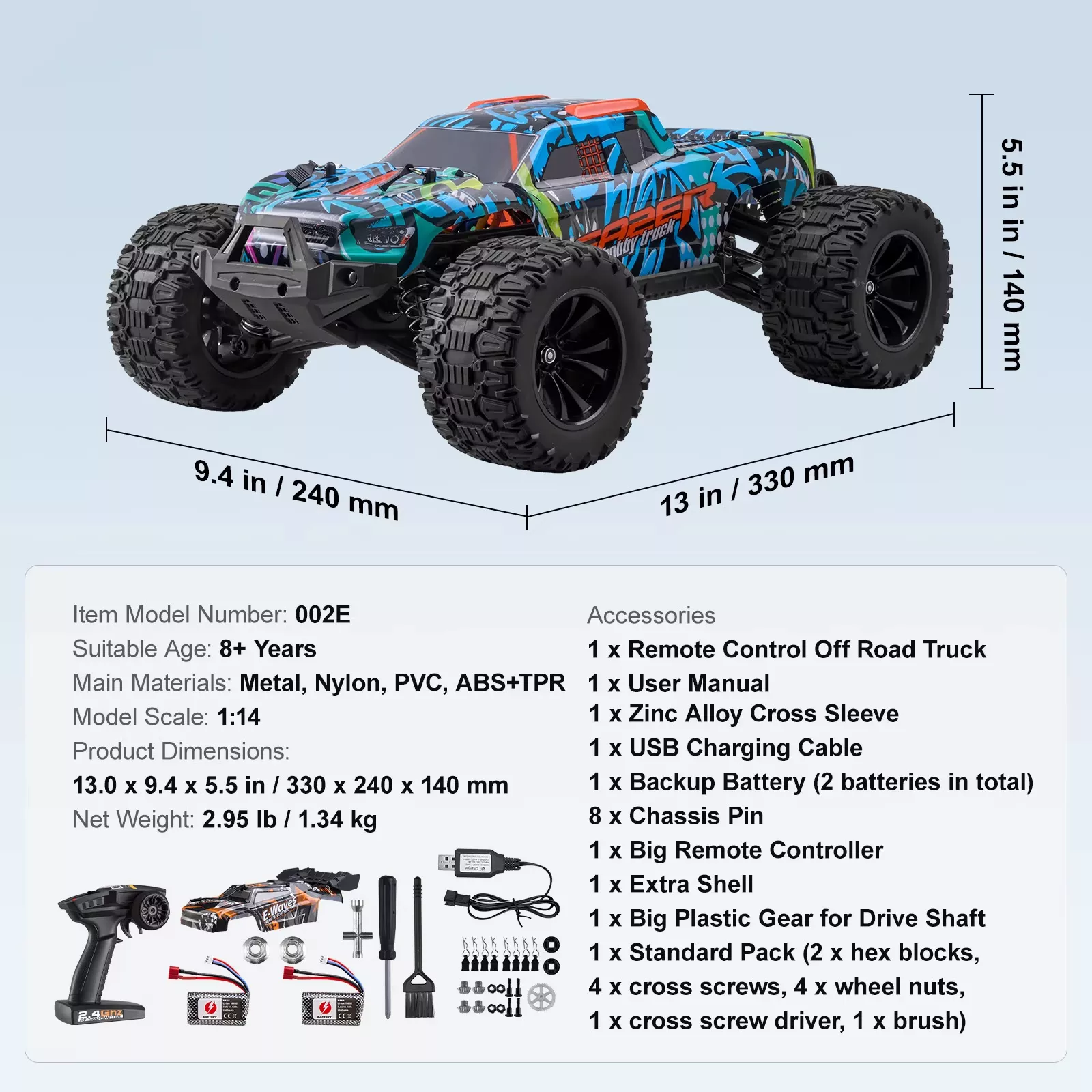 Get ready for non-stop excitement with this 1:14 Scale 4WD Remote Control Off-Road Truck! Built for kids, teens, and RC enthusiasts, this high-performance monster is designed to dominate every terrain. With a blazing top speed of 42 MPH, adjustable speed settings, and a powerful 30,000 RPM motor, it brings you the ultimate thrill of realistic racing. Whether you’re drifting on gravel, climbing rocky hills, or speeding across your backyard, every drive promises pure adrenaline and endless fun!