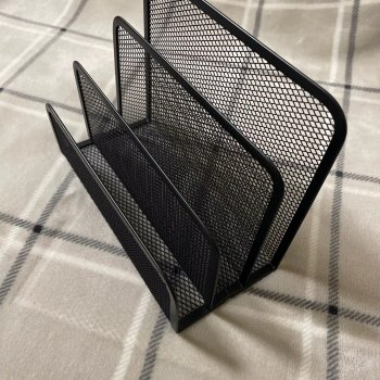 Unlike bulky plastic organizers or fragile cardboard trays, this metal mesh rack strikes the perfect balance between minimalism and resilience. Its matte black finish gives a polished look without drawing too much attention. It’s designed for people who care about aesthetics as much as efficiency. Simple to set up, even simpler to use—this rack helps you reclaim your workspace with ease.