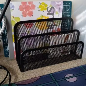What a fantastic organizer! It's not just any old desk accessory, but an absolute lifesaver. With three spacious tiers, it has made sorting and separating my documents a breeze. The sturdy metal construction promises long-lasting use and provides stable support for all my books, magazines, and papers. Plus, its open mesh design adds a sleek touch to my workspace while letting air flow freely to reduce dust buildup. And the best part? Despite offering so much space, it has such a compact footprint that maximizes vertical space—perfect for my small desk at home where every inch counts. This multi-functional organizer is ideal whether you're in an office or study room or even if you need something on your kitchen counter.
