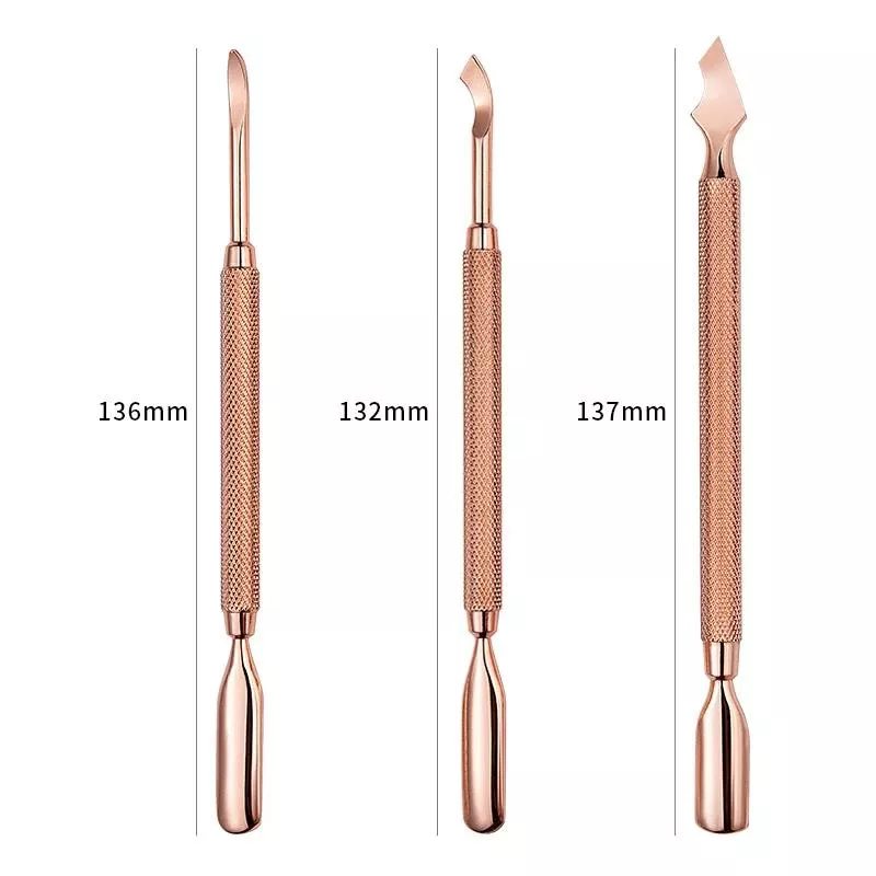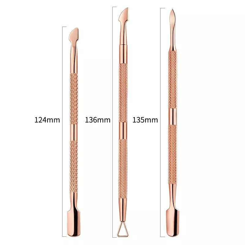 3Pcs Rose Gold Stainless Steel Cuticle Pusher & Nail Care Tool Set