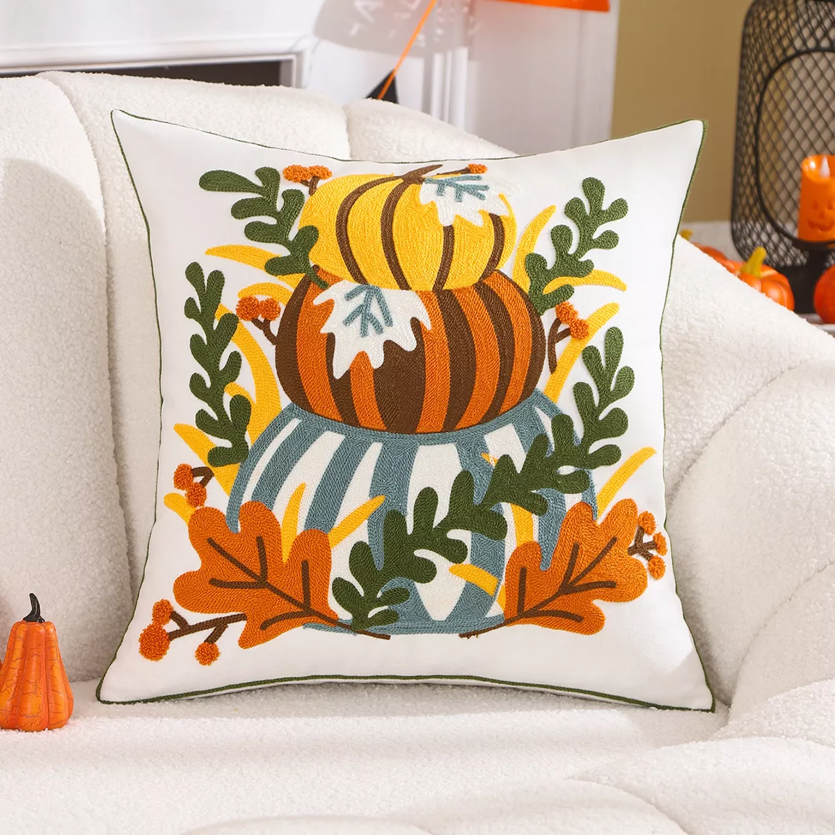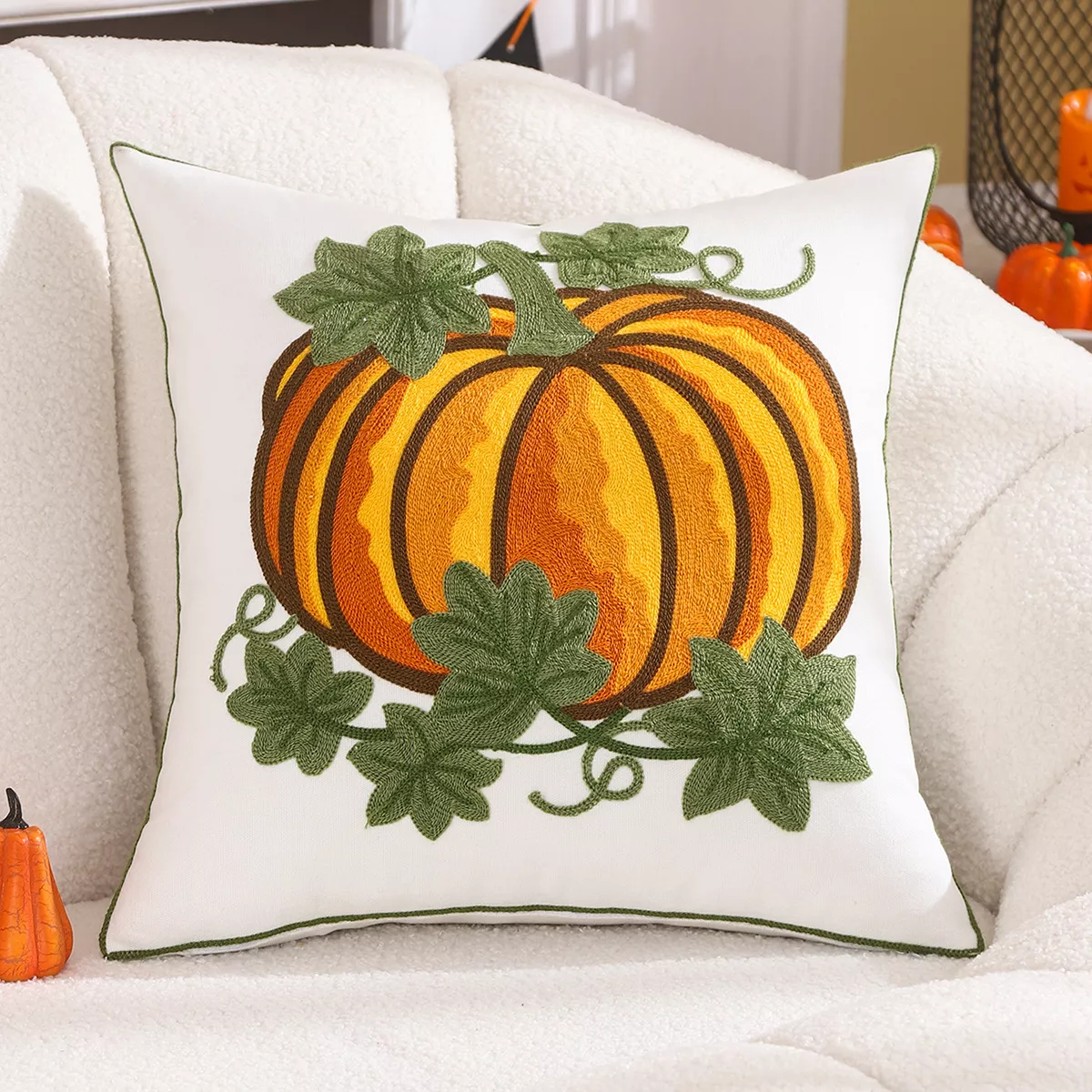 Bring the magic of autumn into your home with this Pumpkin Embroidered Pillow Cover. Designed to add a festive touch to your living space, this charming cotton cushion cover is the perfect accent for your sofa, bed, or bay window. Its detailed pumpkin embroidery and cozy texture create a warm, seasonal atmosphere that makes every corner feel inviting and ready for fall celebrations.