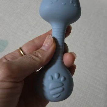 We bought this cute dumbbell shaped toy for our six-month-old son who just started teething recently - best decision ever! Its chewy texture offers him so much comfort plus he loves playing with its fun fitness theme design which keeps him engaged longer than any other toys do.