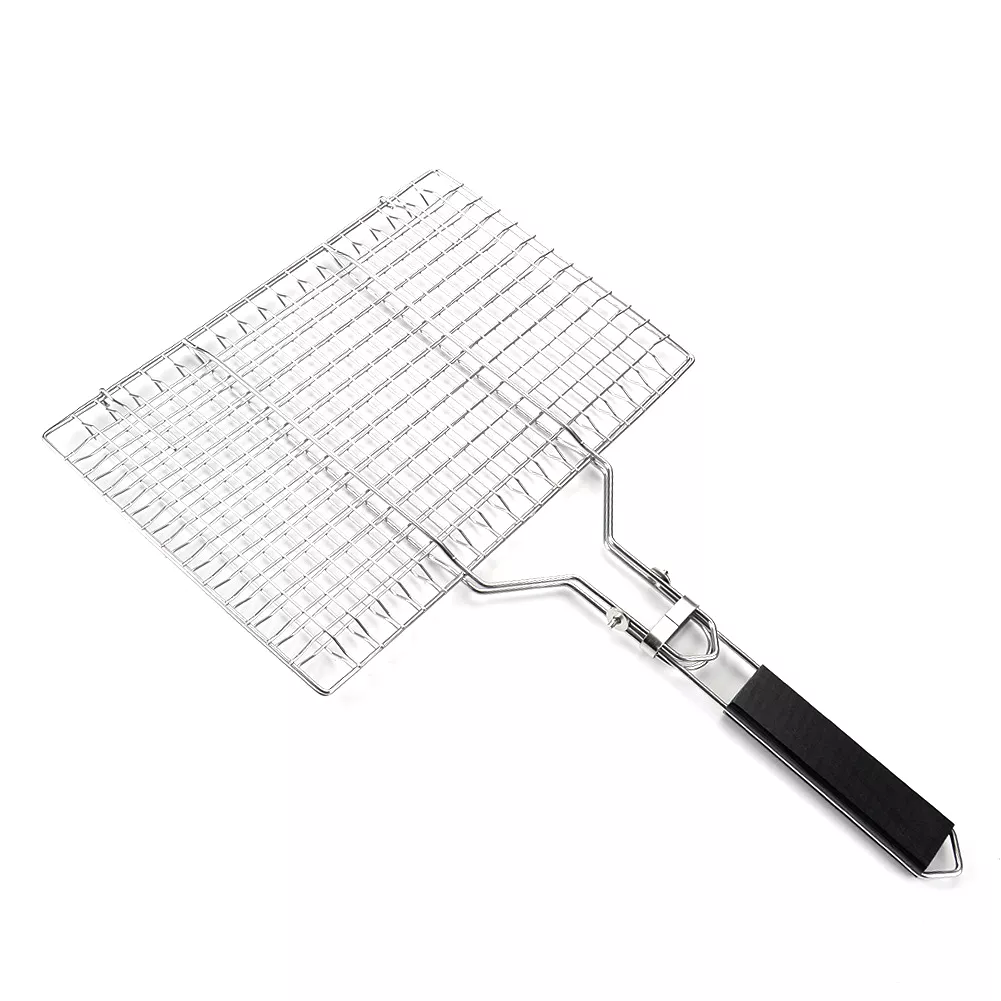 Whether you’re grilling fish, vegetables, shrimp, steaks, or chops, this basket keeps your food secure and evenly cooked. The clever locking system ensures the grid stays in place, while the heat-resistant wooden handle allows safe and comfortable flipping. Its detachable handle adds convenience for transport and compact storage, making it ideal for both indoor and outdoor cooking.