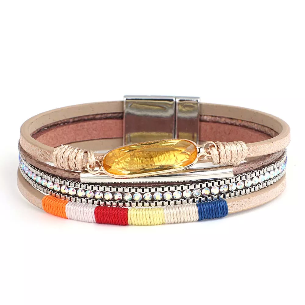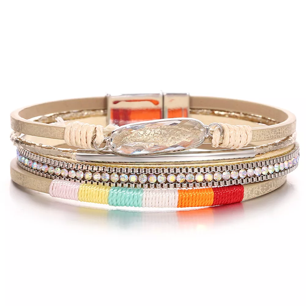Step into effortless bohemian charm with this Colorful Rope Braided Leather Bracelet – a vibrant fusion of texture, color, and sparkle designed to make every outfit unforgettable. Crafted with care, this stunning multilayer bracelet combines braided leather, shimmering crystals, and metallic accents that glisten beautifully under the light. Whether you’re heading to a music festival, a casual brunch, or a beach getaway, this bracelet adds that perfect finishing touch of boho glam.