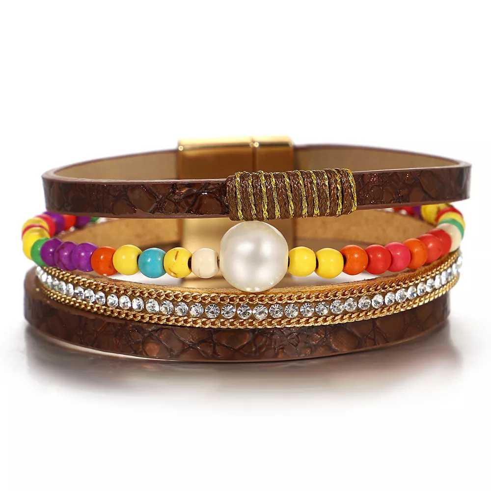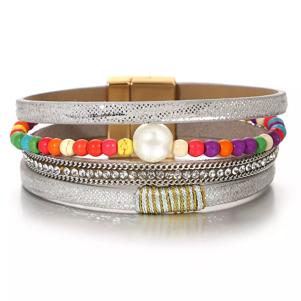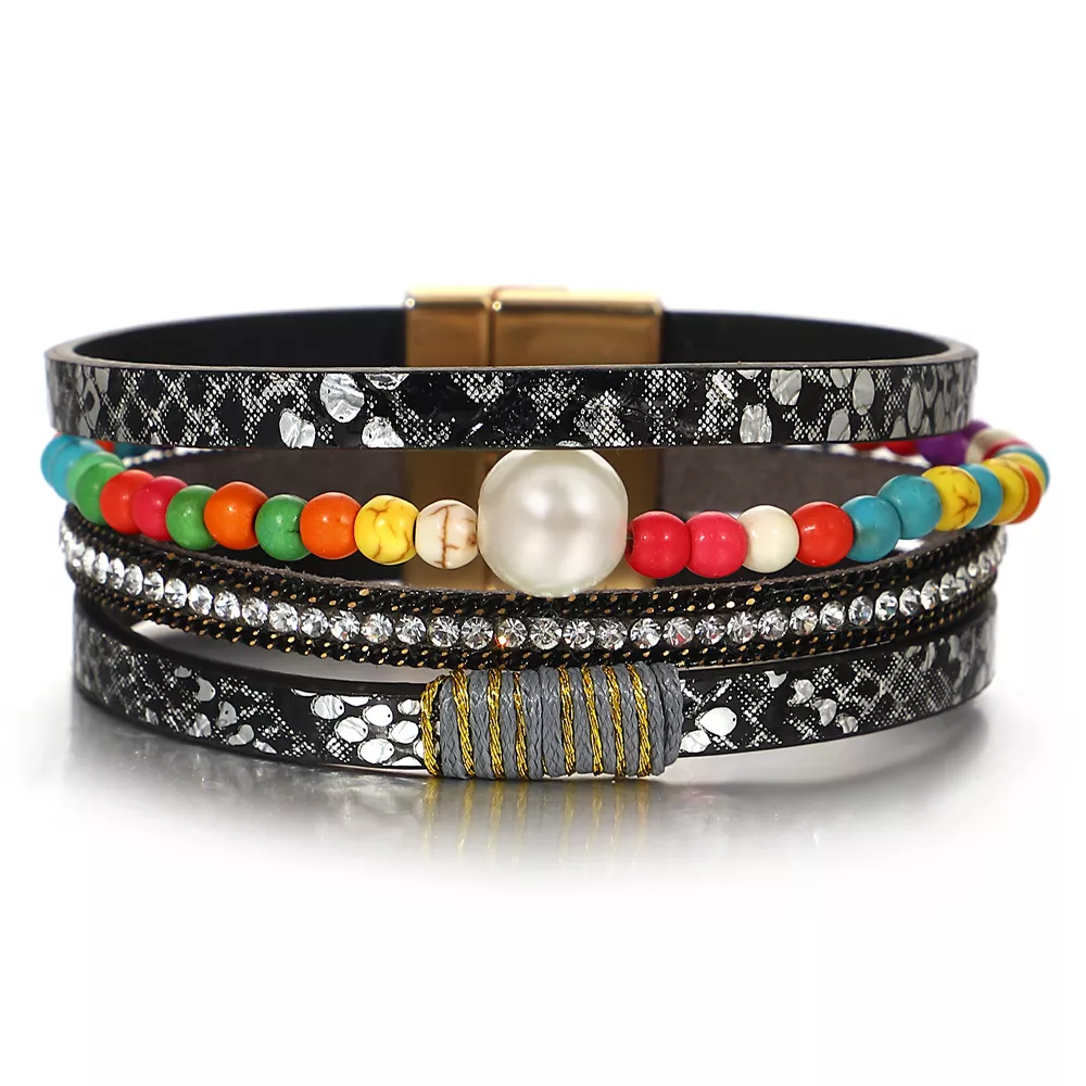 Elevate your accessory game with our stunning Colorful Seed Beads Pearl Leather Bracelet. This exquisite multilayer bracelet is designed to bring style and elegance to any outfit. Wrapped in luxurious leather and adorned with sparkling rhinestones and vibrant seed beads, this bracelet is perfect for fashion-forward women looking to make a statement. Its unique design combines beauty and versatility, making it an ideal addition to your jewelry collection.