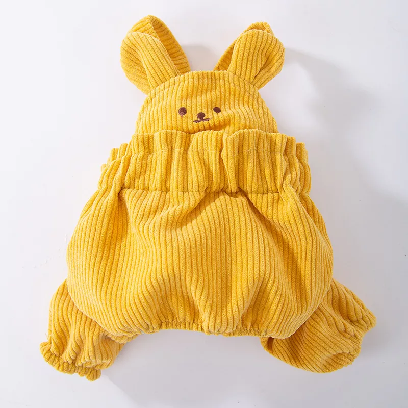 Give your furry friend the gift of comfort and charm with our Cozy Bear Corduroy Overalls. Designed for both dogs and cats, this adorable four-legged jumpsuit is perfect for autumn and winter days. Crafted from soft, high-quality polyester corduroy, it combines warmth, cuteness, and style – making every walk or cuddle session picture-perfect.