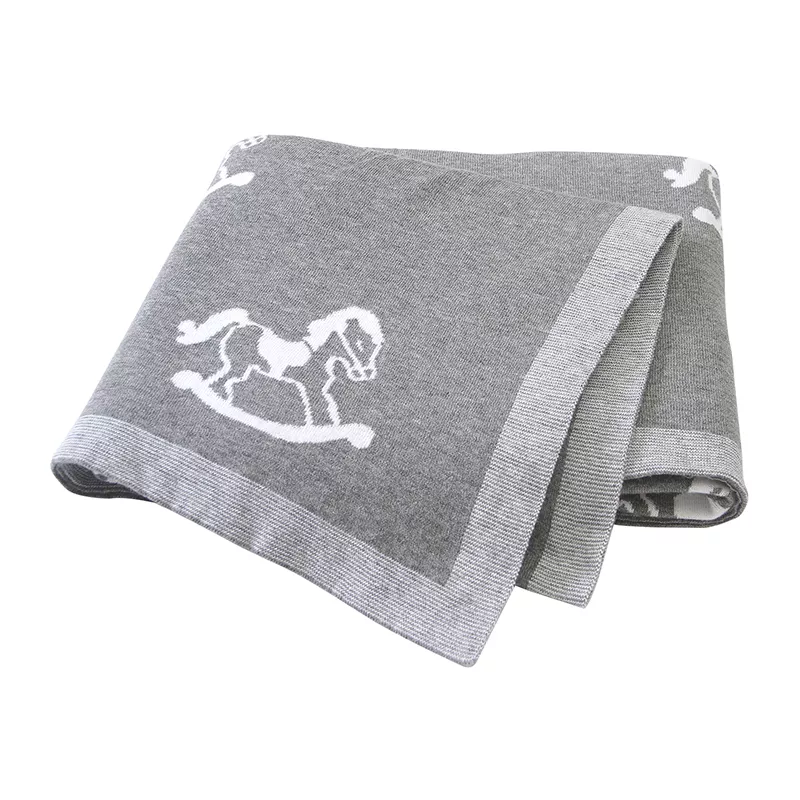 Made from premium cotton, our blanket is designed with your baby’s comfort in mind. The cozy knit fabric feels gentle against delicate skin, ensuring warmth and security without irritation. The charming horse design adds a playful touch, making this blanket not just a practical item, but a delightful complement to your nursery decor or baby’s travel gear.