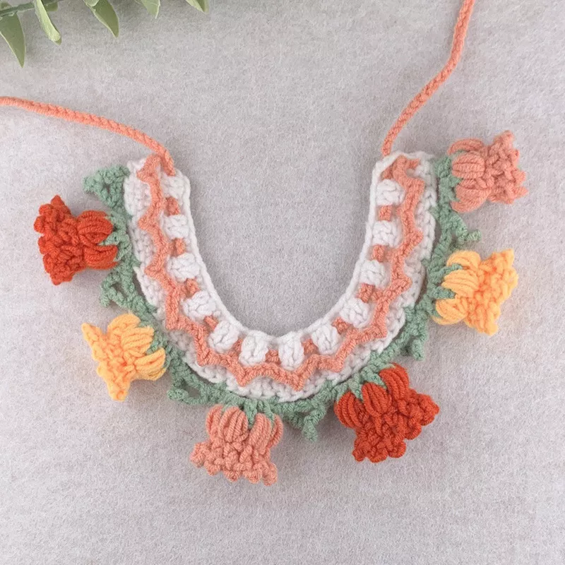 Every pet deserves a touch of cuteness. Add this crochet flower scarf collar to your cart today and let your furry friend show off their charm in style. Whether it’s for playtime or picture day, this decorative bib is sure to make tails wag and hearts melt!