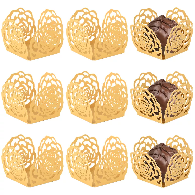 These wrappers are more than just packaging – they’re a statement of elegance. Use them to enhance your dessert table and impress your guests with an added layer of detail and charm. The smooth paper finish and delicate design make your treats look beautifully presented, whether displayed on a dessert tray, gifted as party favors, or served at a banquet.