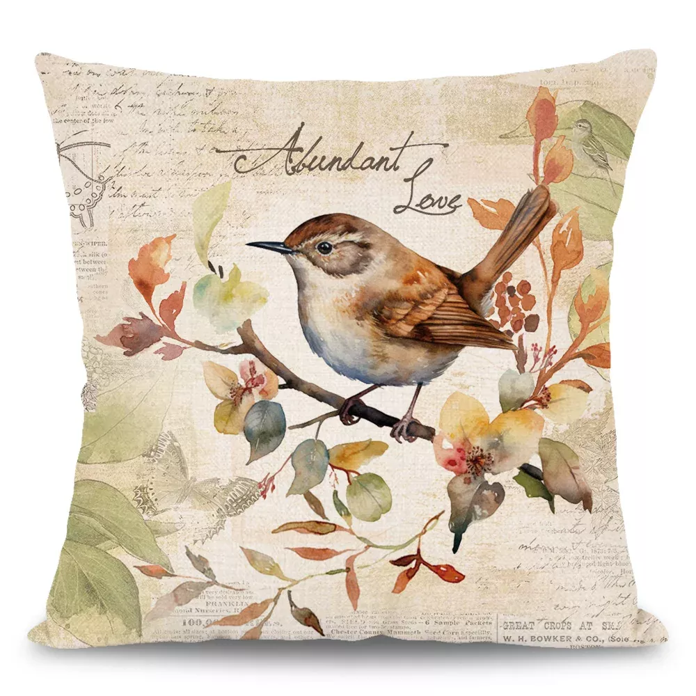 Fall Thanksgiving Maple Squirrel & Bird Pillow Cover – Autumn Harvest Decor