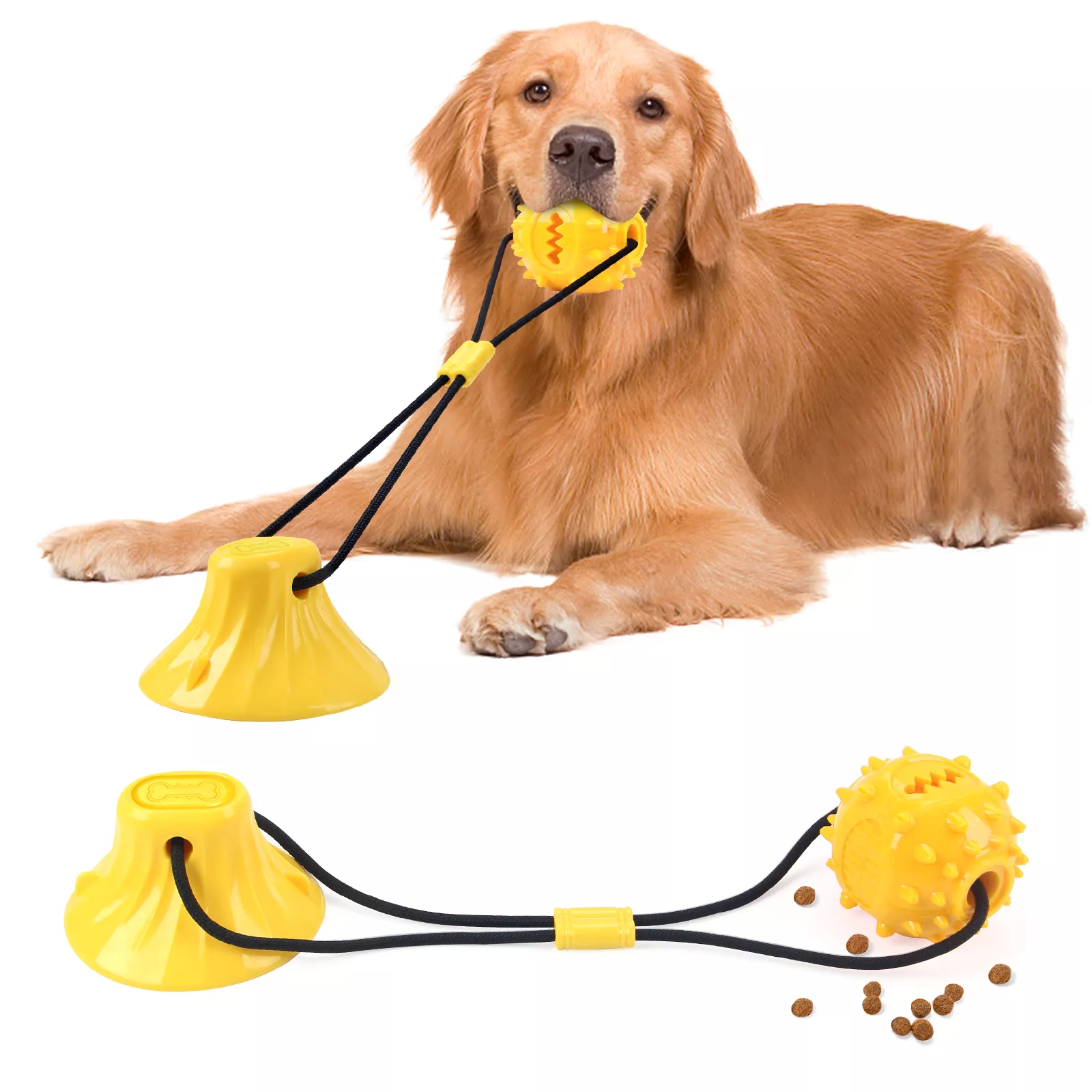 Interactive Dog Chew Toy with Suction Cup & Treat Dispenser – Teeth Cleaning & Training Ball