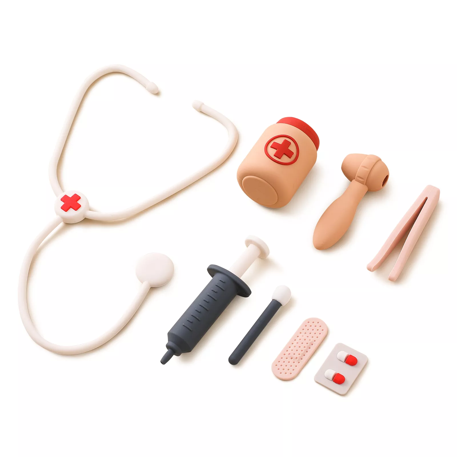 Bring the world of healthcare right into your child’s playroom with this engaging Kids Doctor Playset. Designed for young learners, this medical kit lets children step into the shoes of a doctor, nurturing curiosity, empathy, and creativity. Made with soft, safe silicone, every piece is lightweight and easy to handle, making it perfect for little hands. From listening to heartbeats with a stethoscope to exploring the contents of a medical box, this set turns playtime into a fun learning adventure.