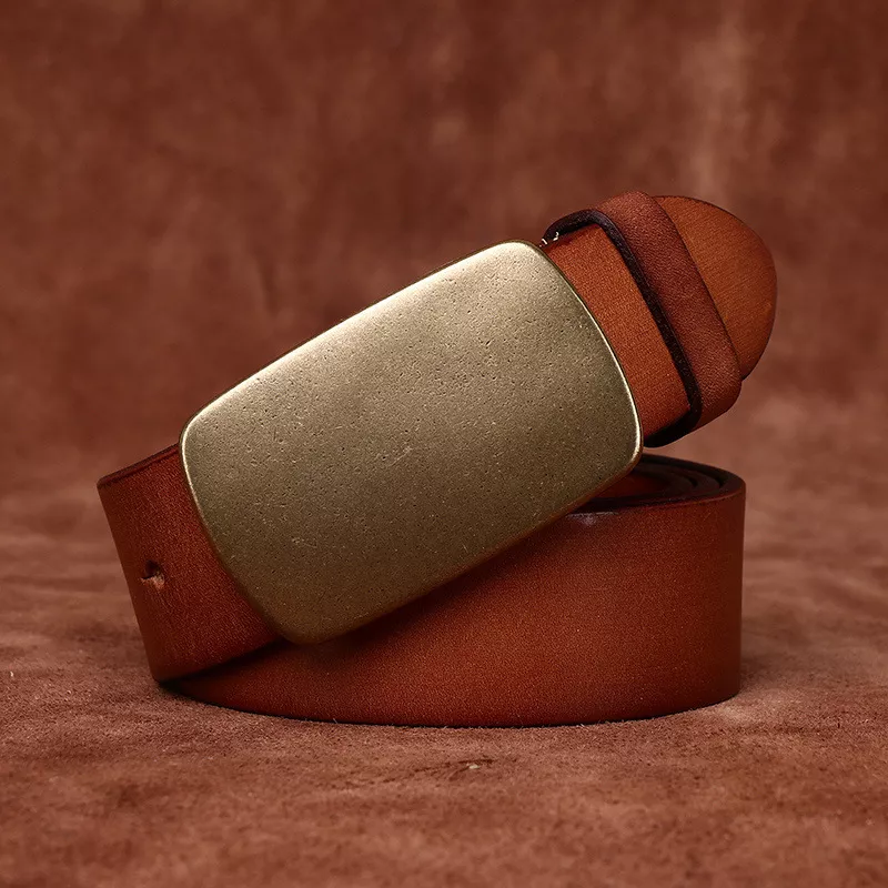 Luxury Genuine Leather Belt for Men – Brass Pin Buckle Strap