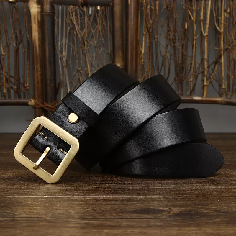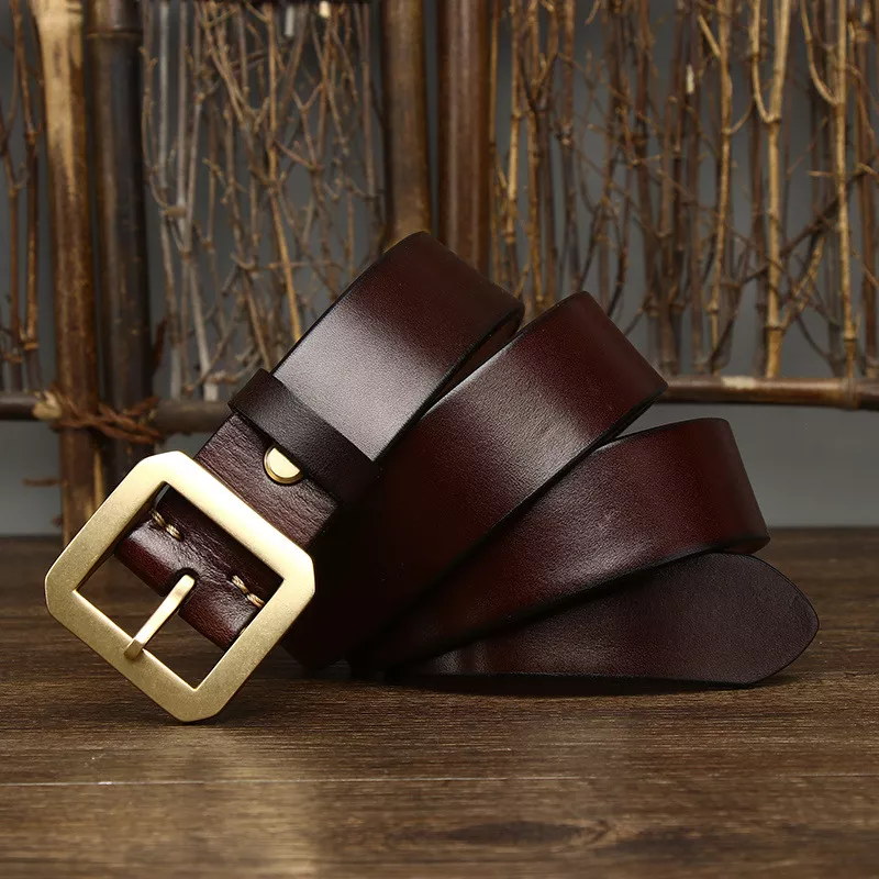 Step up your style game with a belt that delivers both durability and class. Add this genuine cowhide leather belt with brass buckle to your collection and experience the difference in every outfit. Order today and elevate your everyday look with timeless appeal.