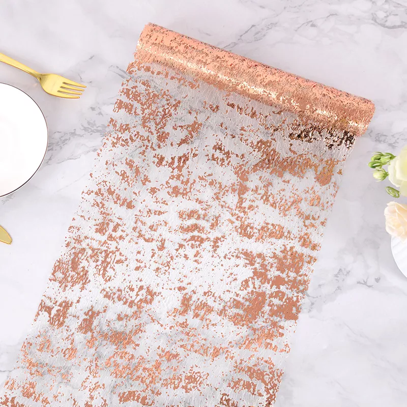This eye-catching table runner is designed to transform mundane tables into stylish showcases. Whether you’re hosting a grand wedding reception or an intimate birthday party, this metallic gold runner will elevate your decor and leave a lasting impression on your guests. The rich gold color and shimmering sequins create a warm and inviting atmosphere that’s perfect for celebrations.