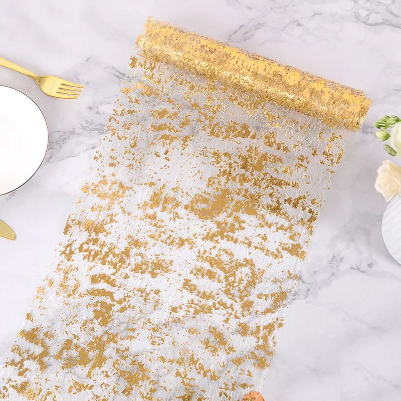 If you’re ready to take your celebrations to the next level, then our Metallic Gold Table Runner Sequin Glitter Mesh Roll is just what you need. Its stunning design and luxurious finish will not only beautify your event but also amaze your guests. Make your occasion unforgettable by adding this elegant table runner to your decor. Order now and let the sparkle shine at your next gathering!