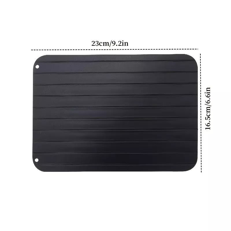 Say goodbye to waiting hours for your meat to thaw or using unsafe methods that compromise taste and texture. The Rapid Defrosting Tray is your kitchen’s secret weapon for quick, natural, and hassle-free defrosting. Crafted from premium aluminum alloy, this sleek black thawing board uses the power of thermal conductivity to rapidly thaw frozen food — no electricity, chemicals, or microwaves needed. It’s perfect for busy households, home cooks, and chefs who value speed, safety, and flavor.