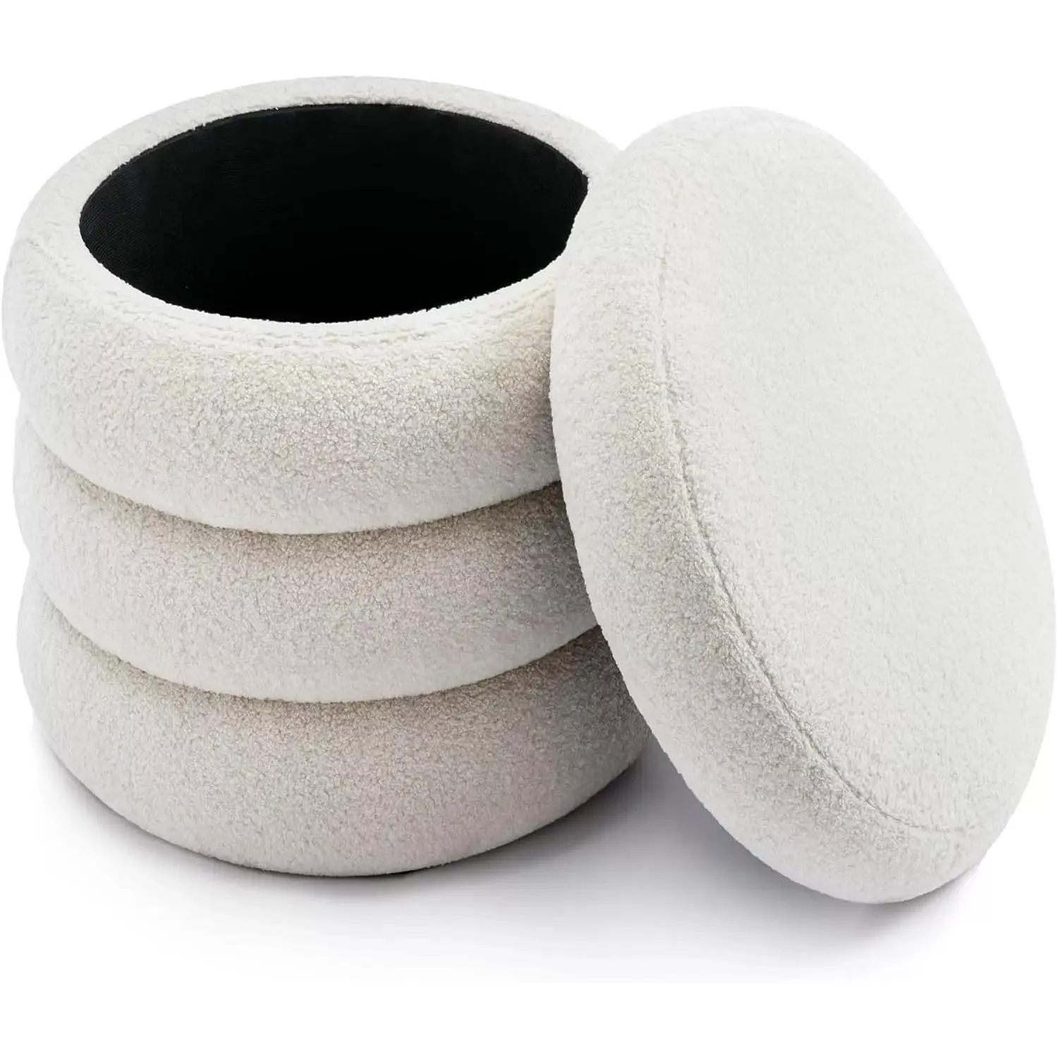 Small Boucle Storage Ottoman – Round Sherpa Footstool with Removable Lid