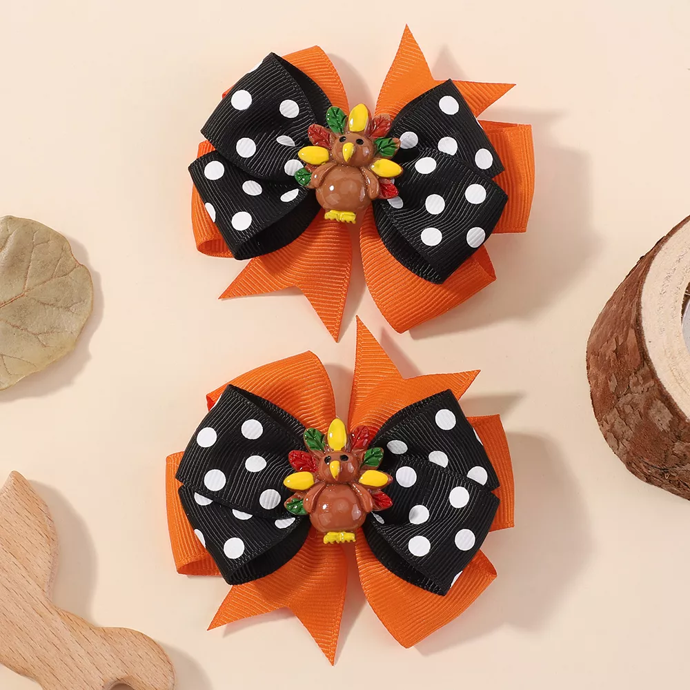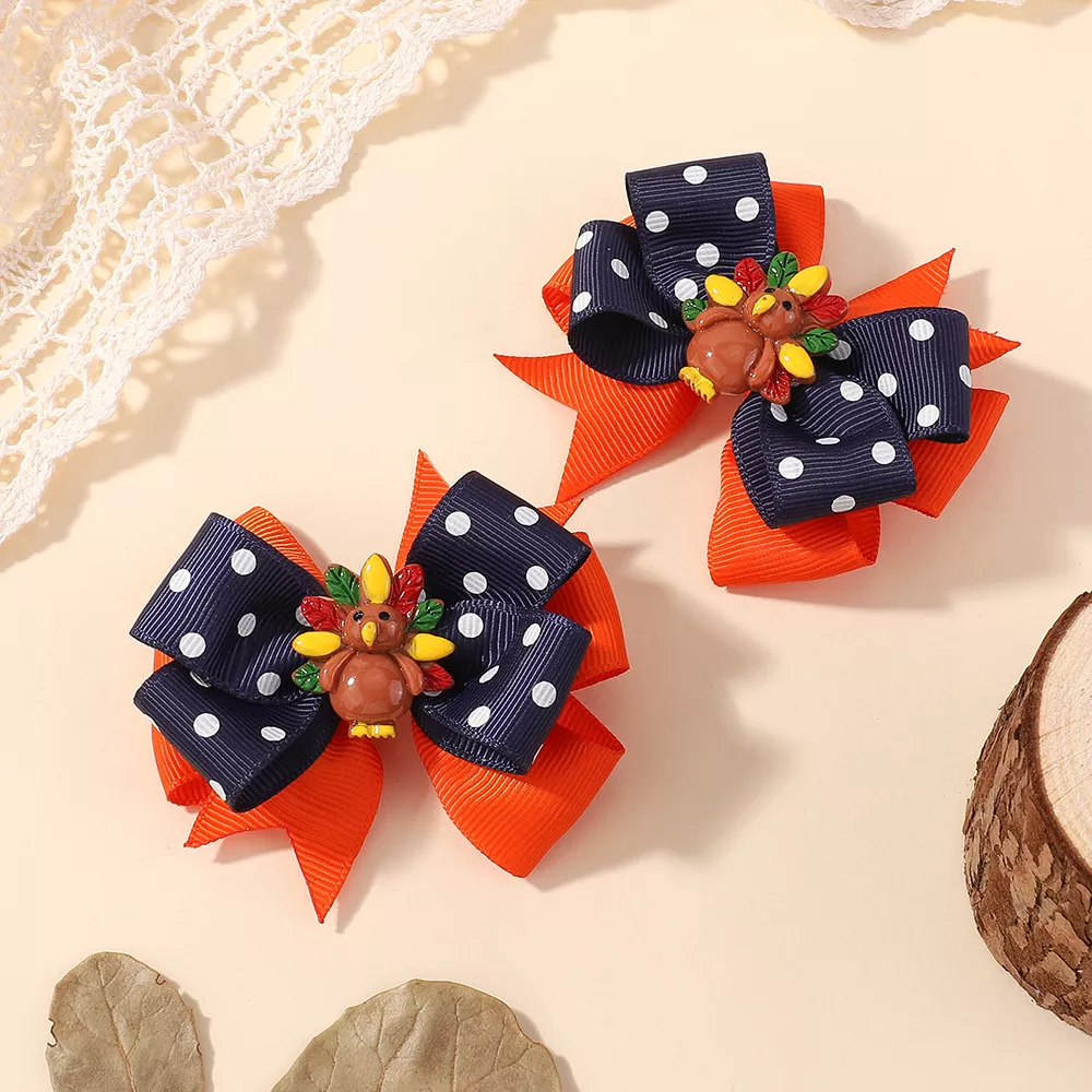 Thanksgiving Bow Hair Clips Set for Baby Girls – 2Pcs Turkey & Pumpkin Design