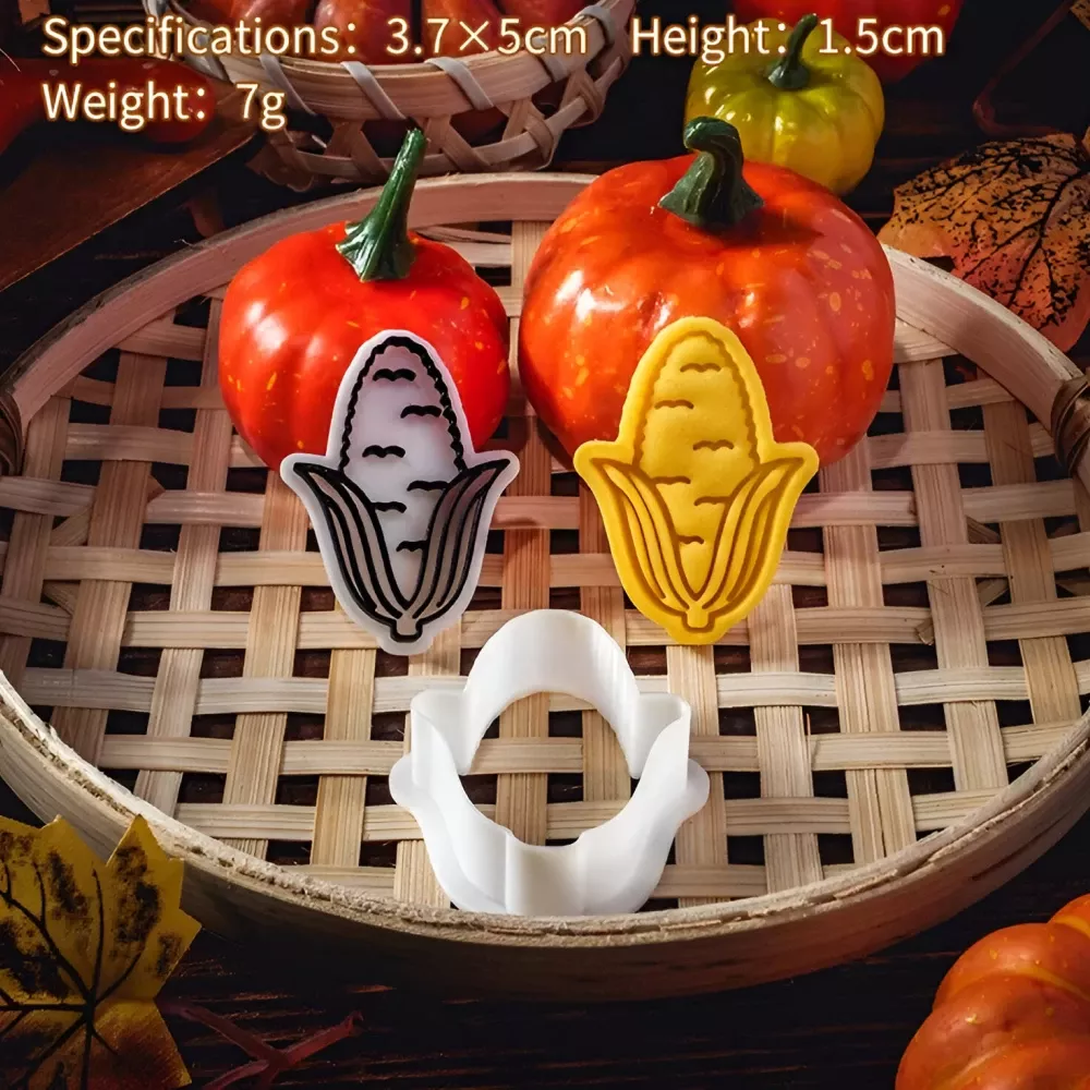 Thanksgiving Cookie Cutter Set – Turkey, Pumpkin Pie, Corn & Chestnut Molds