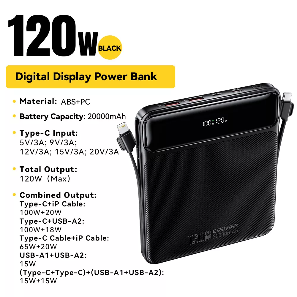 Don’t let low battery slow you down. Stay connected, productive, and entertained with the 100W 20000mAh Fast-Charging Power Bank. It’s the ultimate portable energy solution that keeps pace with your lifestyle. Get yours today and experience the freedom of unstoppable power!