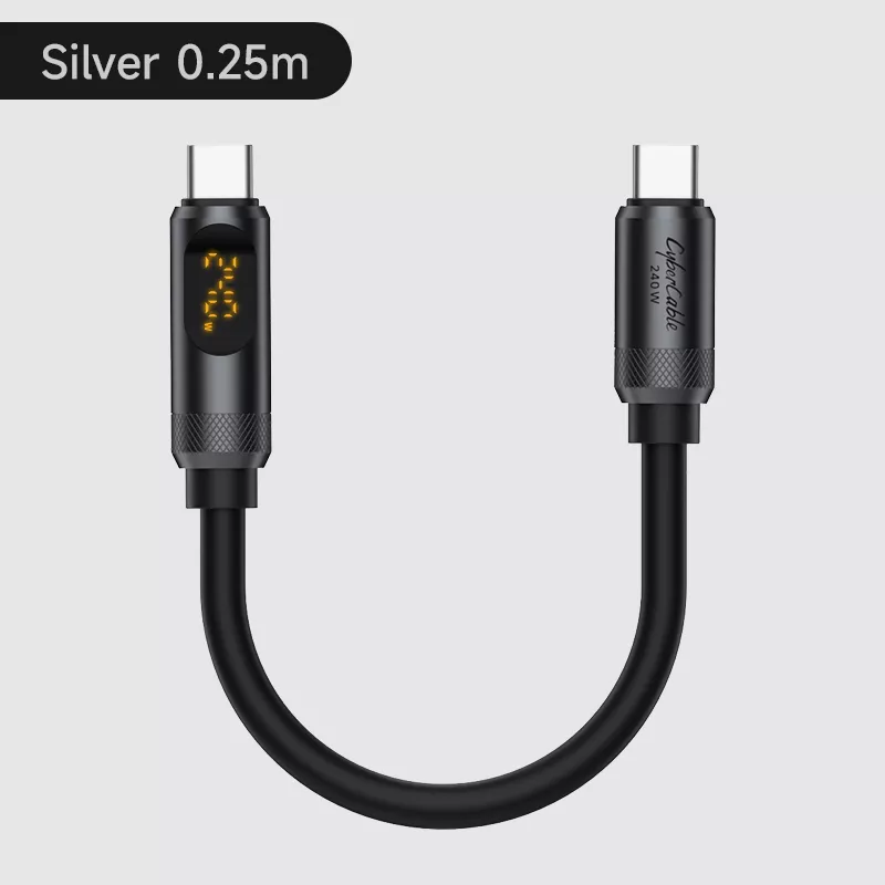 USB-C Fast Charging Cable 0.8ft with LED Power Display 240W PD Charger Cord