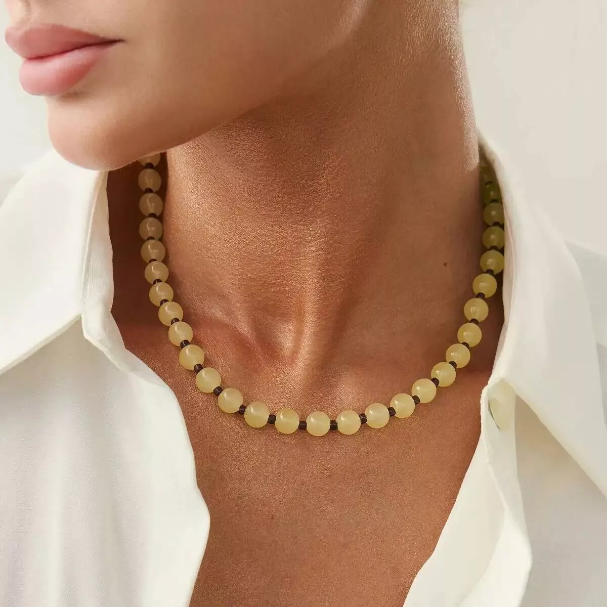 Y2K Glass Beads Choker Necklace for Women – Retro Boho Clavicle Chain Jewelry